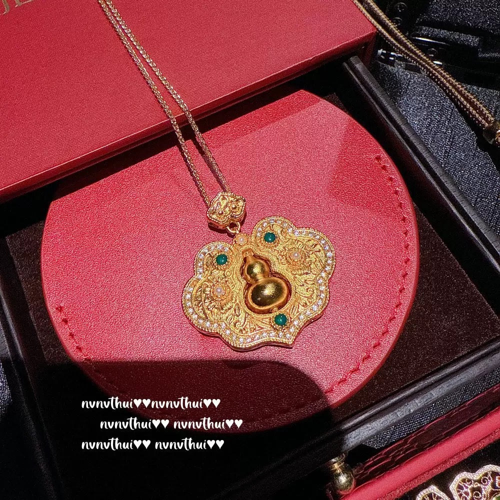 Ancient French golden chisel carved window compass necklace New Chinese style diamond zircon ring with 18K gold-plated filigree.